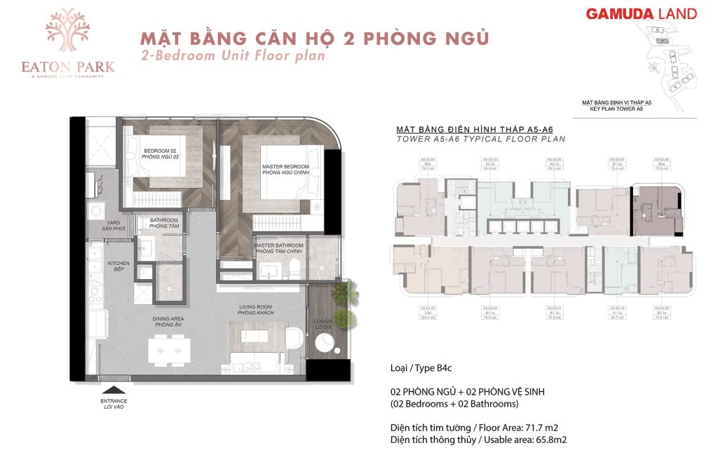 Layout thiết kế căn hộ 2 Phòng ngủ, Loại B4c tòa tháp A5 và A6 dự án Eaton Park