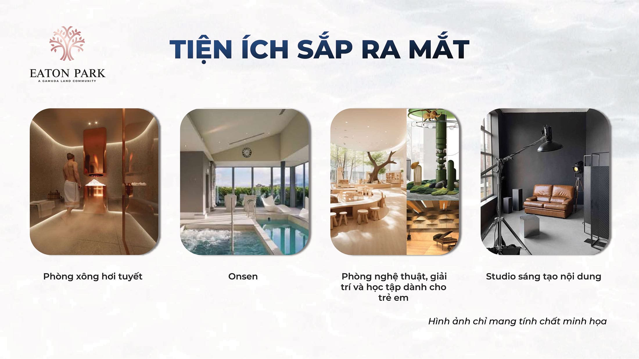 Eaton Park sở hữu hơn 100 tiện ích nội khu đa dạng, đáp ứng mọi nhu cầu sinh hoạt, vui chơi giải trí của cư dân thuộc mọi lứa tuổi. Hơn thế nữa, Eaton Park còn chú trọng vào thiết kế Biophilic, mang thiên nhiên vào từng không gian sống. Cư dân sẽ được tận hưởng bầu không khí trong lành, mát mẻ và hòa mình vào thiên nhiên ngay tại nhà.
