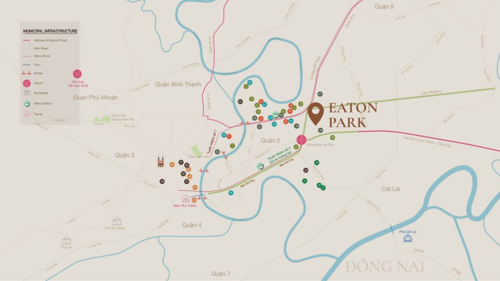 Eaton Park sở hữu vị trí đắc địa tại mặt tiền đường Mai Chí Thọ, phường An Phú, TP. Thủ Đức. Nơi đây được ví như trái tim của khu Đông Sài Gòn, nơi giao thoa giữa sự sôi động, náo nhiệt của trung tâm thành phố và nhịp sống hiện đại, năng động của khu vực mới phát triển.